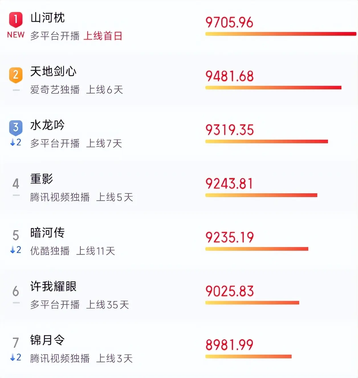 只是没等来这些剧定档,反倒是等来了鹅厂另一部新作《山河枕》,前期预热效果不错,一经播出更是登顶全网热度第一的宝座,爆相已经体现。