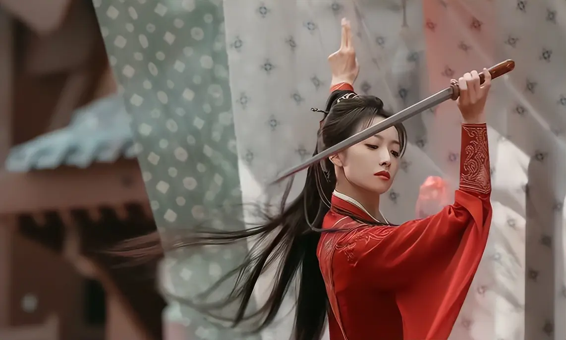 而且古装剧造型要比现代剧造型更能凸显出她的英气,新剧中她饰演的楚瑜在高楼上舞剑的那一幕简直称得上她的人生镜头了。