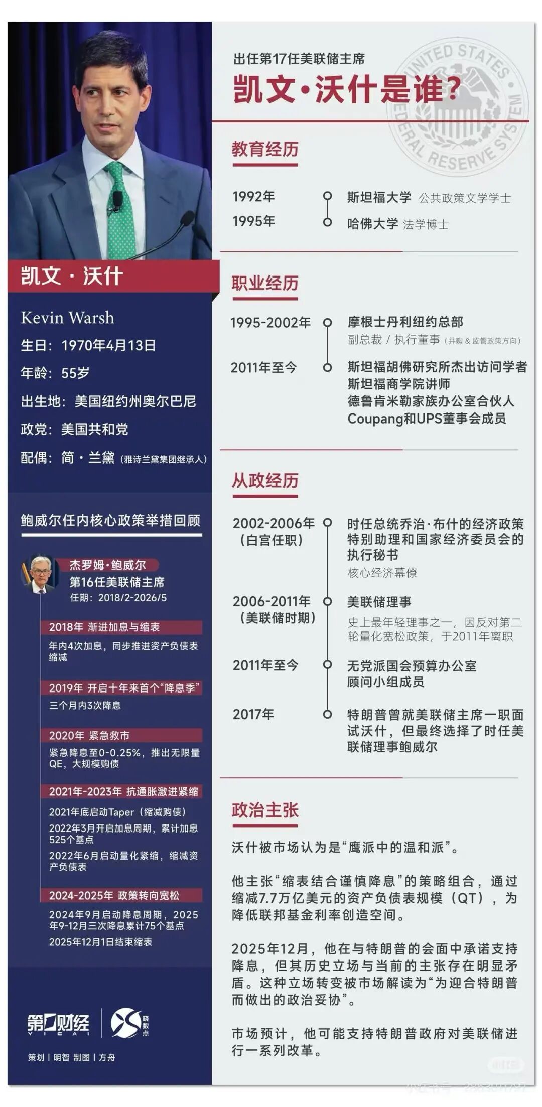 沃什是律师出身,曾在2006年至2011年担任美联储理事,在2008年金融危机期间,他是时任美联储主席本·伯南克与华尔街的主要联络人,也是收紧货币政策的主要倡导者。