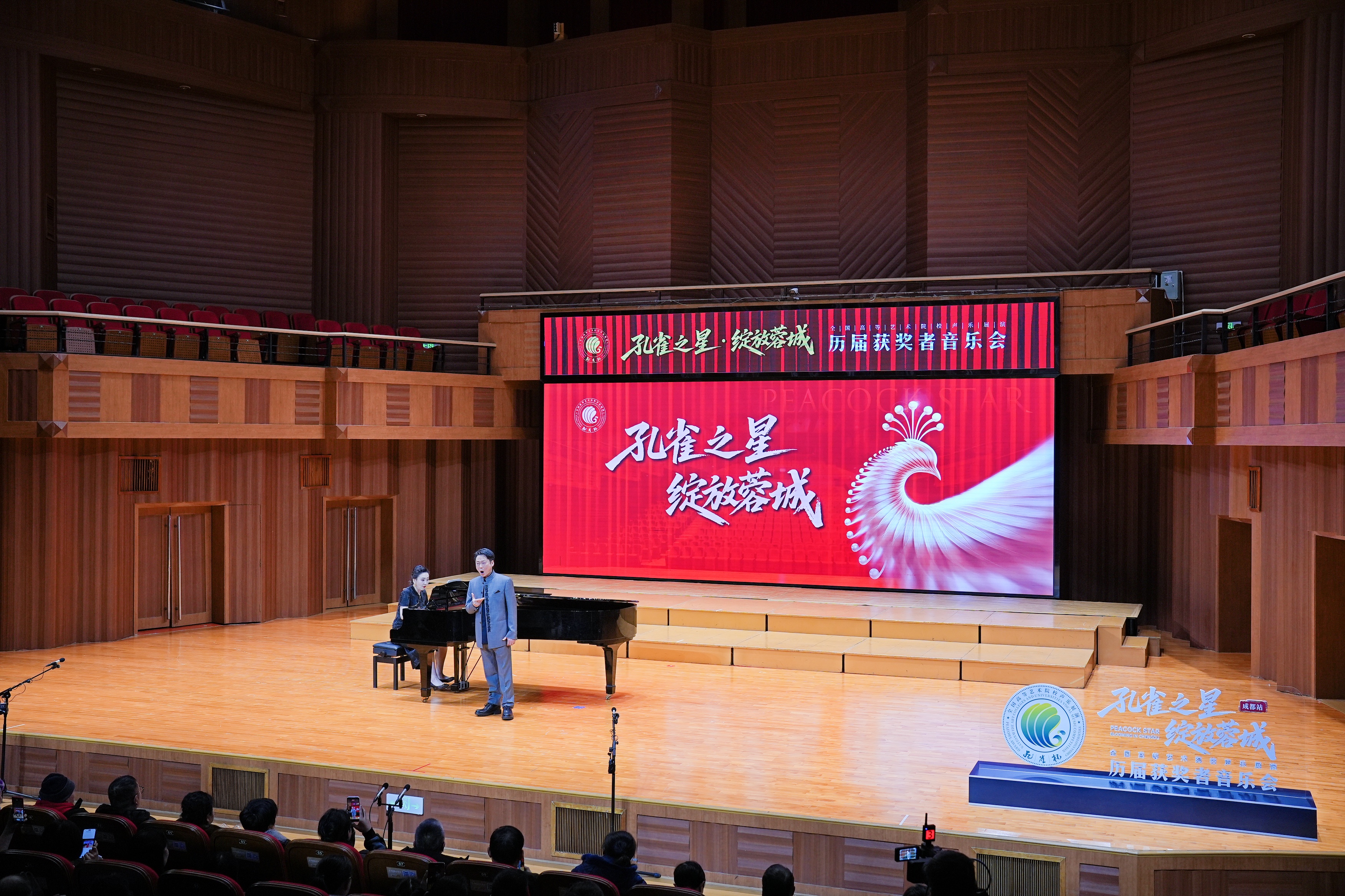 2月7日,由中国声乐家协会、孔雀杯组委会、四川美育声乐艺术中心、广东省声乐艺术研究会主办的“孔雀之星·绽放蓉城——全国高等艺术院校声乐展演历届获奖者音乐会”在成都金沙国际音乐厅圆满举行。本次活动集结多位孔雀杯获奖者、国家级声乐名家及优秀合唱团体,以经典与原创交织、民族与西洋碰撞的艺术形式,为观众呈现了一场浸润心灵的视听盛宴,用歌声彰显川蜀文脉底蕴与时代活力。