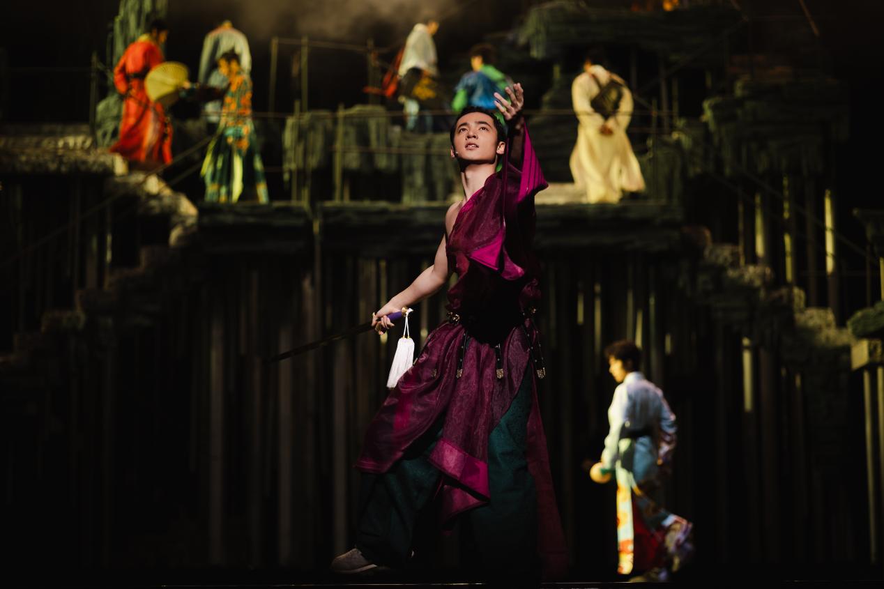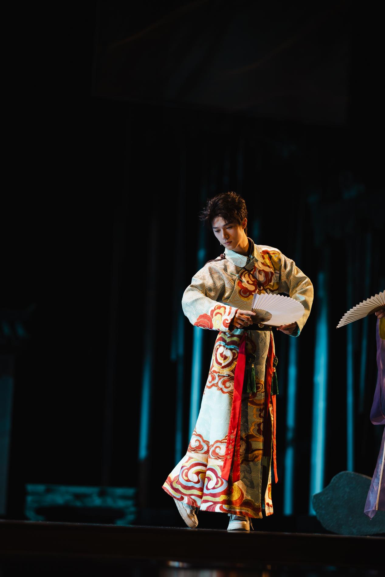 故事始于垂虹桥畔,女主角达生与闺蜜乘船海外留学,途中探讨人生、爱情与文明传承。“时空交错”的叙事逻辑串联起她们与范蠡、苏轼等历史人物的精神对话,呈现了“大理想”与“小坚守”的共生共鸣。其中,由青年演员李其炫饰演的“徐灵胎”作为吴地文化的代表在演出中提灯探寻,不停追问,打破“第四堵墙”的舞台行动成为整部演出的“点睛之笔”。