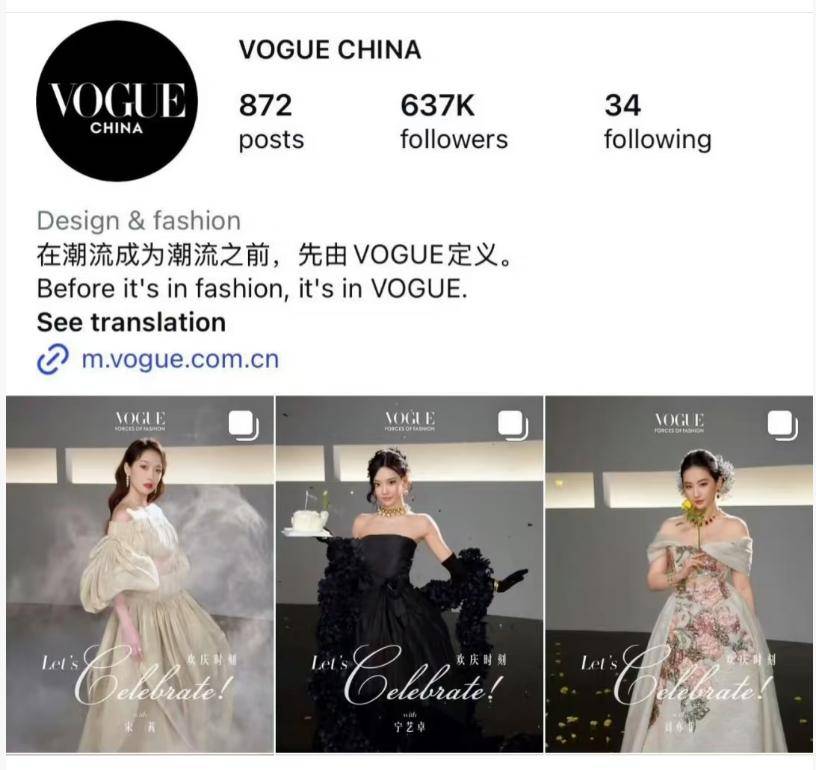 vogue在外网发布的三段视频,分别以刘亦菲和两个韩团务工过的女爱豆作为封面。